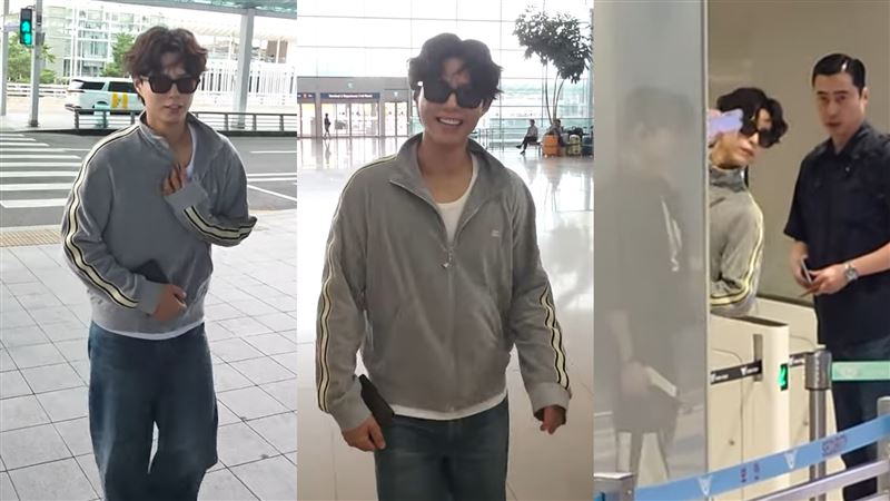 今天清晨他自仁川機場出發前往台灣,身穿灰色棉質運動外套搭配藍色牛仔褲,戴著墨鏡依舊難掩笑容。他在入關時貼心地先讓其他旅客通行,親切地向媒體打招呼,這樣的暖心舉動也讓與他同劇的IU讚他「善良到令人生氣」。