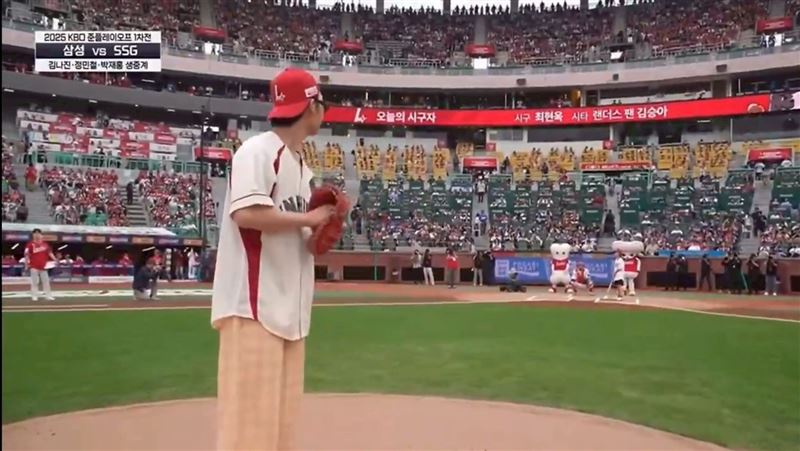 在仁川SSG Landers棒球場舉行的KBO季後賽中,崔顯旭作為開球嘉賓首次擔綱開球,但他的一記快球卻成了全場焦點。白色球衣、紅色棒球帽與墨鏡的造型亮相,卻在出手的一刻讓球偏離軌道,直接擦過未戴頭盔的女童頭部上方,場面驚險。現場觀眾與直播畫面都顯示他事後僅作頭部示意,未向女孩道歉或安撫,引發廣泛關注與質疑。