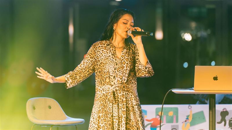 北流文化館4週年慶以華語經典為主題,姑慕‧巴紹與那那大師同台演出,重溫天后金曲。她也分享出道前的和聲經歷與偶像啟發,讓粉絲聽得心跳加速。