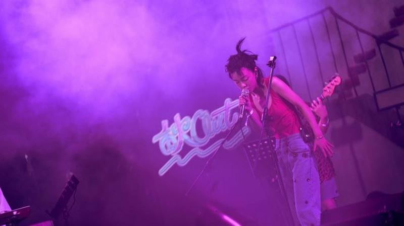 秋OUT音樂節在台北公館商圈熱鬧開唱,深受樂迷期待的Mola Oddity一出場就掀起尖叫。主唱郭采潔披著紅色背心搭配個性髮型,時而酷帥時而嫵媚,展現截然不同的聲線風貌,她興奮地宣布「非常開心!我終於帶著我的樂團回家演出了!」同時宣布全新EP《Cave Crackers》正式發行,感謝聽眾一直以來的支持。