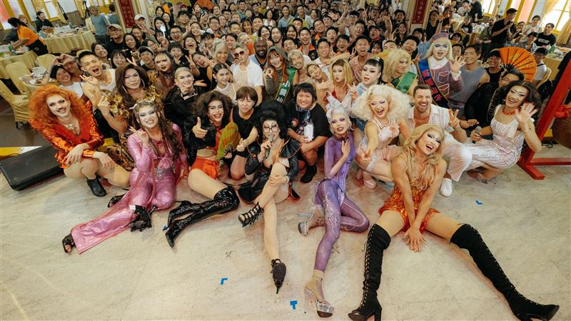 由變裝皇后社群 Sunday Sisterhood 主辦、主理人 Sandra Hoe 帶頭的皇后大辦桌,日前在松山奉天宮空前登場,42桌、420座位座無虛席,現場氣氛熱烈。藝人阿本、《百靈果》凱莉、《甲板日誌》迪克與安迪,以及「最帥公民老師」黃益中都到場捧場,為十月份同志驕傲月揭開序幕。